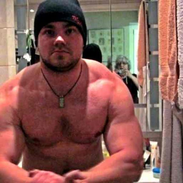 Bumped from an F for being on steroids to an A for asking his Mimaw to take his picture. In the bathroom.