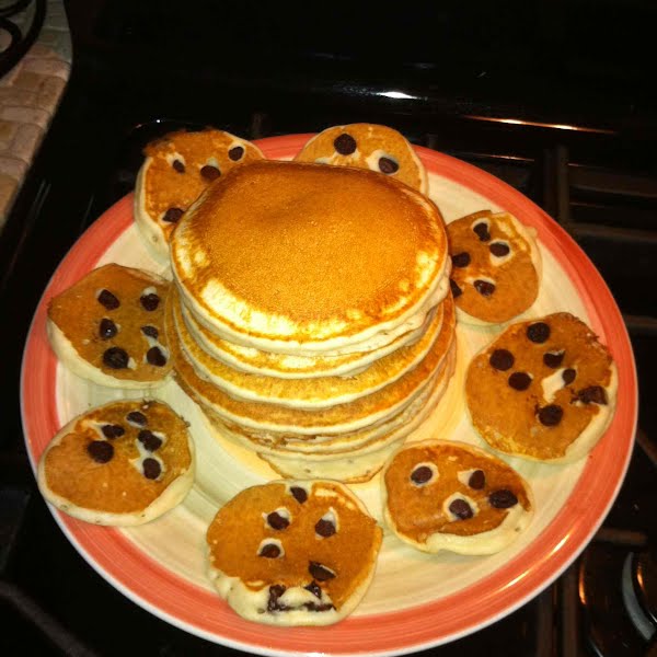 Just made pancakes with mini chocolate chip ones all around.