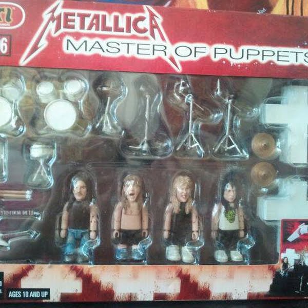 Small figures of Metallica with the stage of Master of Puppets.