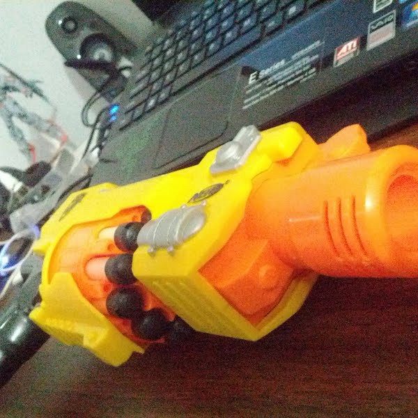 Pro: Motorized, semi-auto, Cons: Very noisy, you won't be able to sneak with this thing on